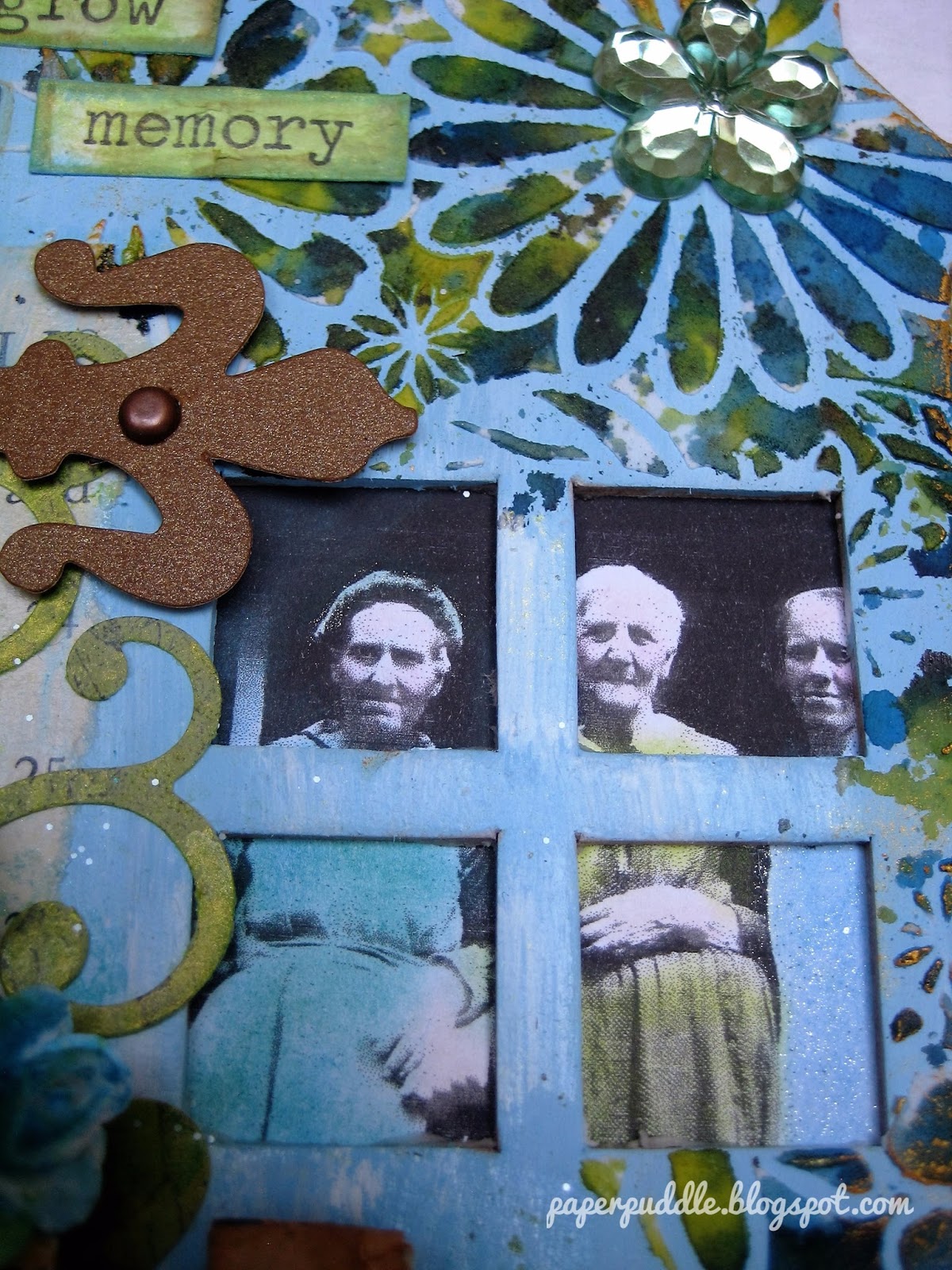 The photo of the 3 women is one I copied from an actual photo I bought at a flea market. I chalked the women, then used a Wink of Stella glitter pen to add some sparkle.